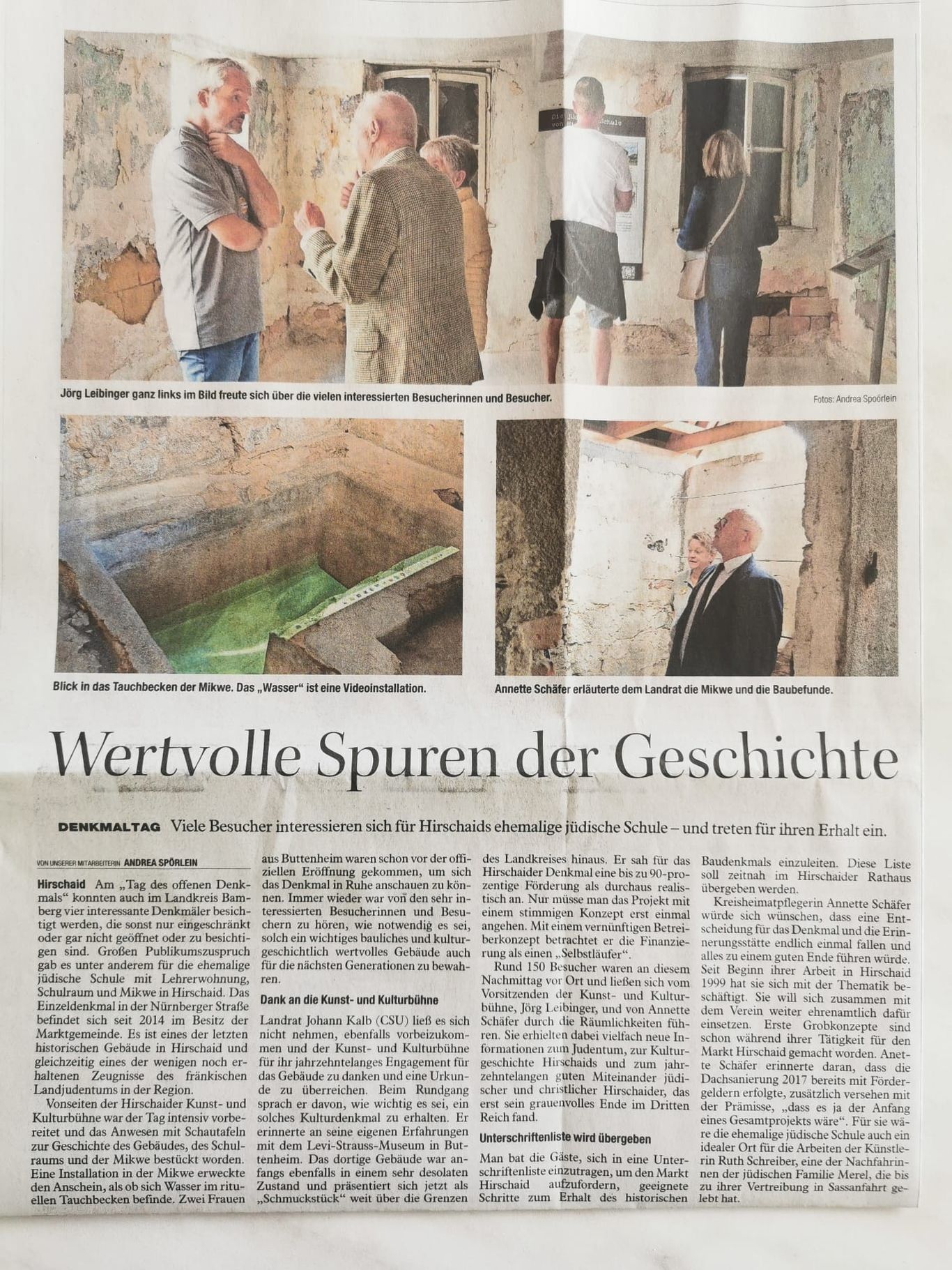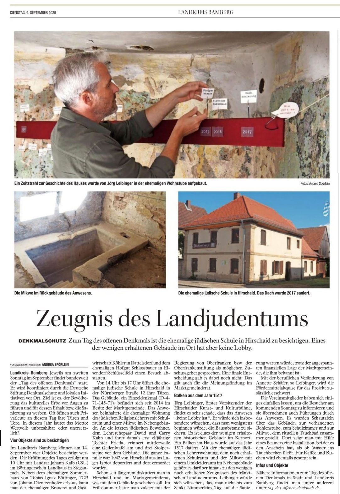 Berichterstattung im Fränkischen Tag zum Tag des offenen Denkmals am 14. September 2025